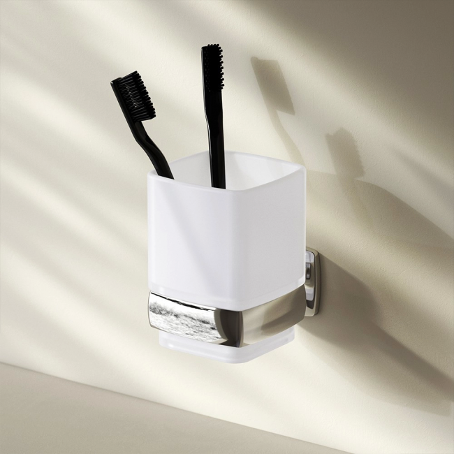 Дерзкая и стильная коллекция Gem превращает даже простые аксессуары для ванной комнаты в классные дизайнерские детали которыми хочется пользоваться каждый день. Форма аксессуаров Gem повторяет линии смесителей коллекции подчеркивая единую концепцию дизайна. Премиальные детали: массивное матовое стекло прямоугольной формы. Лазерная обработка стыков – ультратонкий шов и 100% защита от влаги.