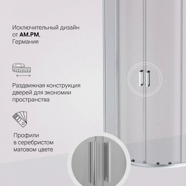 Стекло для душевого ограждения AM.PM Gem 80x80 см. профиль серебро, стекло прозрачное купить с доставкой. 100% Оригинал. Гарантия!