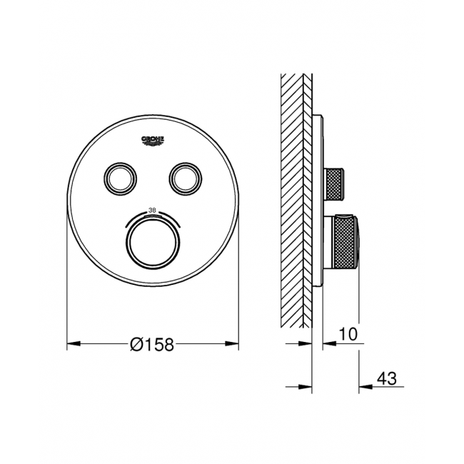 - GROHE SafeStop Plus опционно ограничитель температуры на 43°C / 46°C, включен