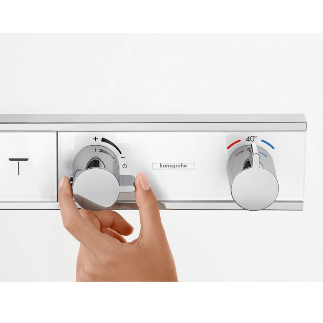 При использовании смесителей с термостатами RainSelect вы можете управлять процессом принятия душа с помощью больших плоских кнопок Select. Этот тонкий центр управления аккуратно встраивается в стену. Переход на новый уровень — в соответствии с высочайшими стандартами дизайна. Активное регулирование расхода воды — количество воды можно устанавливать с помощью круглого регулятора.