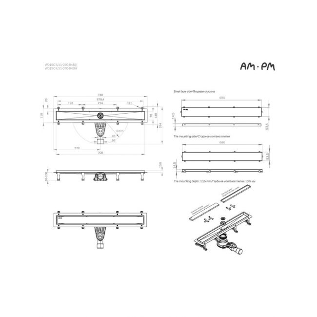 Трап для душа AM.PM MasterFlow 70 W01SC-U11-070-04BM черный купить с доставкой. 100% Оригинал. Гарантия!