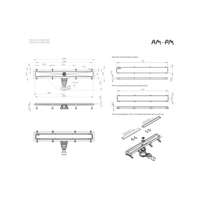 Трап для душа AM.PM MasterFlow 80 W01SC-U11-080-04SB хром купить с доставкой. 100% Оригинал. Гарантия!