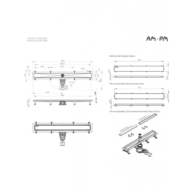 Трап для душа AM.PM MasterFlow 90 W01SC-U11-090-04SB хром купить с доставкой. 100% Оригинал. Гарантия!