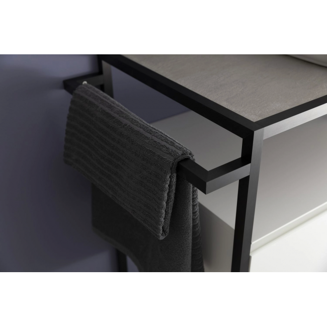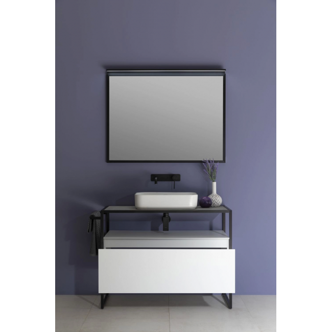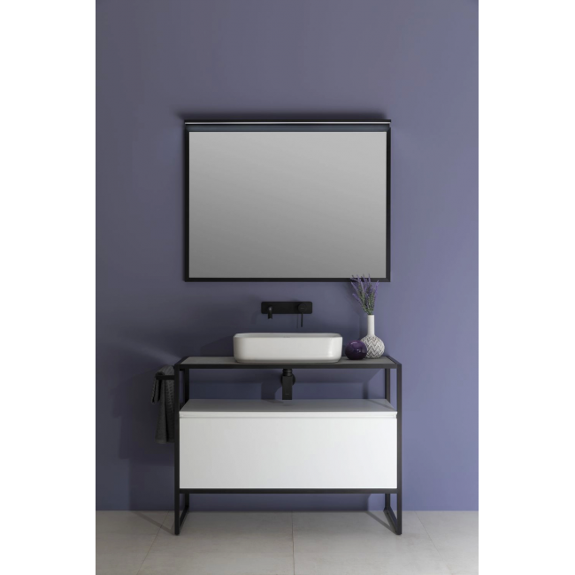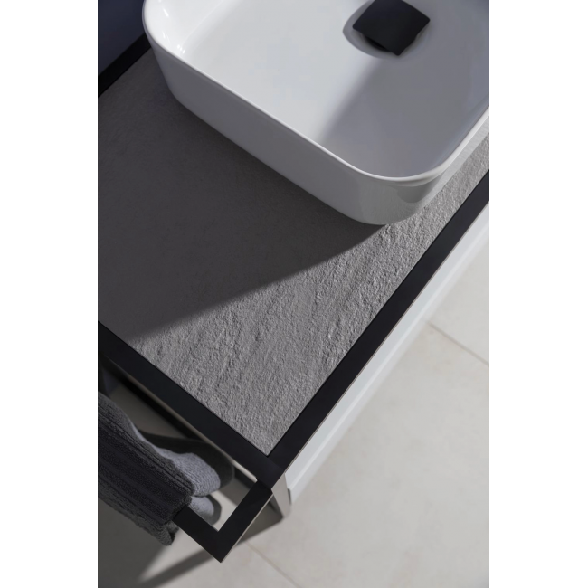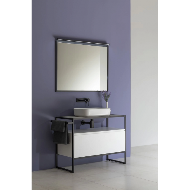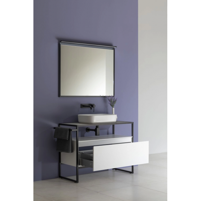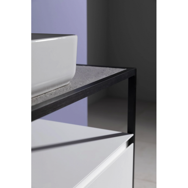 Стильные каркасы тумб и пеналов выполнены из металла, имеют брашированную поверхность с нанесением цвета путем анодирования.