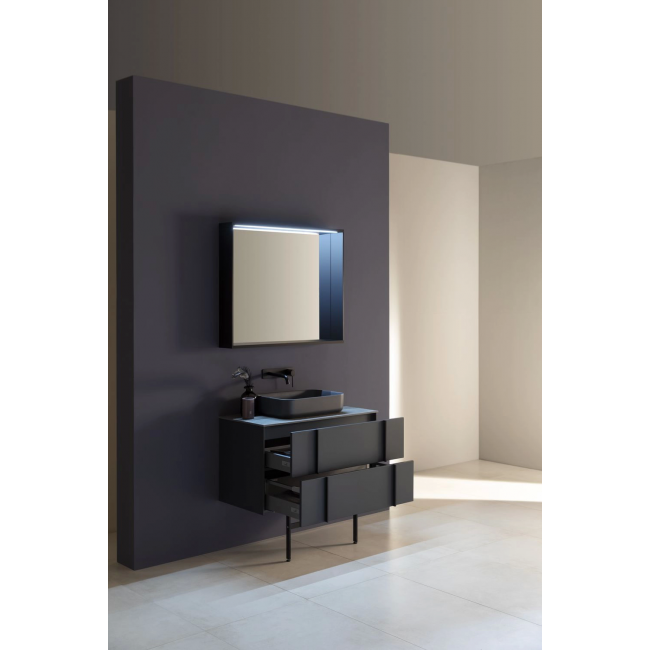 Изюминкой коллекции являются стильные и оригинальные металлические ручки, которые образуют единую линию с ножками тумбы и пенала. Ручки, опоры и зеркала коллекции REALITY выполнены из металла в цветах: черный браш или латунь браш.