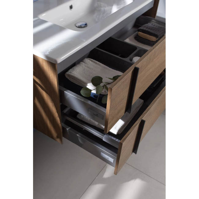 Плавное закрывание ящиков, полное выдвижение, прочное дно (толщина 16 мм), нагрузка до 30 кг.