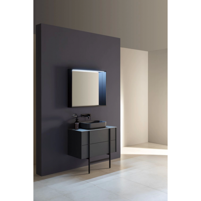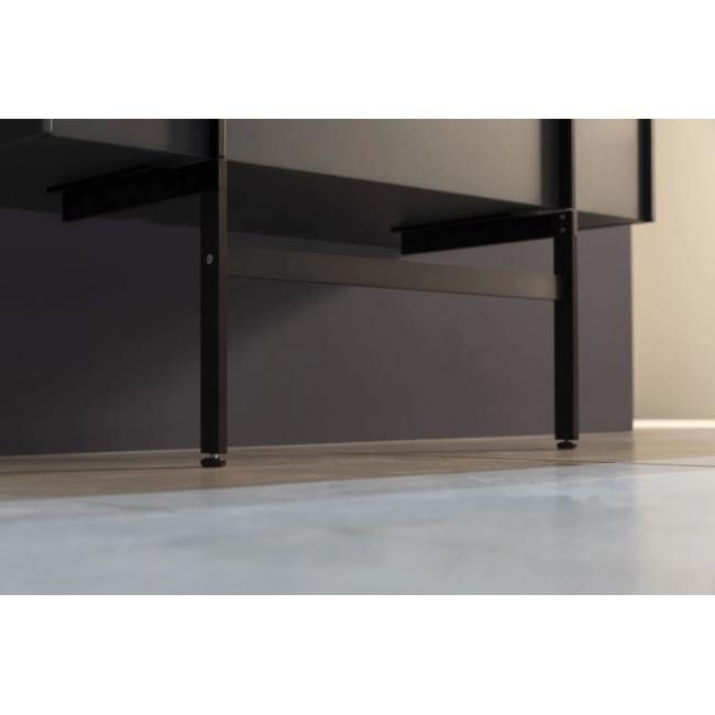Изюминкой коллекции являются стильные и оригинальные металлические ручки, которые образуют единую линию с ножками тумбы и пенала. Ручки, опоры и зеркала коллекции REALITY выполнены из металла в цветах: черный браш или латунь браш.