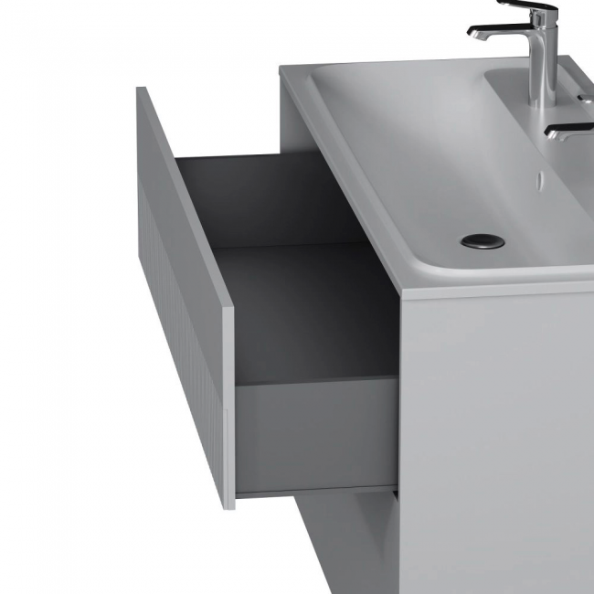 Удобный выдвижной ящик позволит хранить все необходимые средства под рукой. Невероятно мягкое открытие и закрытие благодаря направляющим скрытого монтажа с системой soft close.