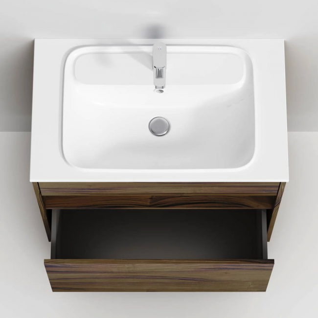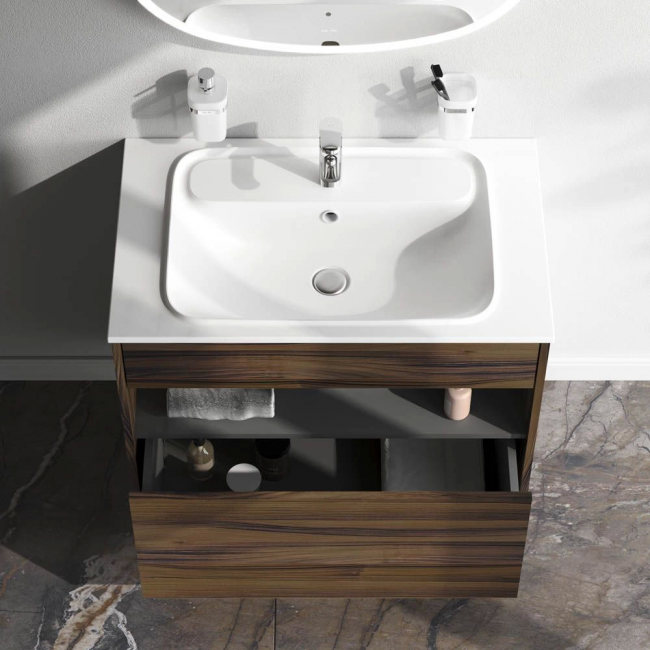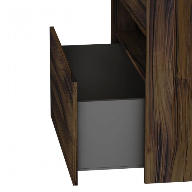 Удобный выдвижной ящик и вместительная открытая ниша позволяют хранить все необходимые средства под рукой. Невероятно мягкое открытие и закрытие благодаря направляющим скрытого монтажа с системой soft close.