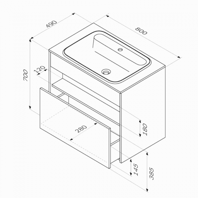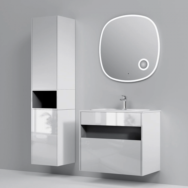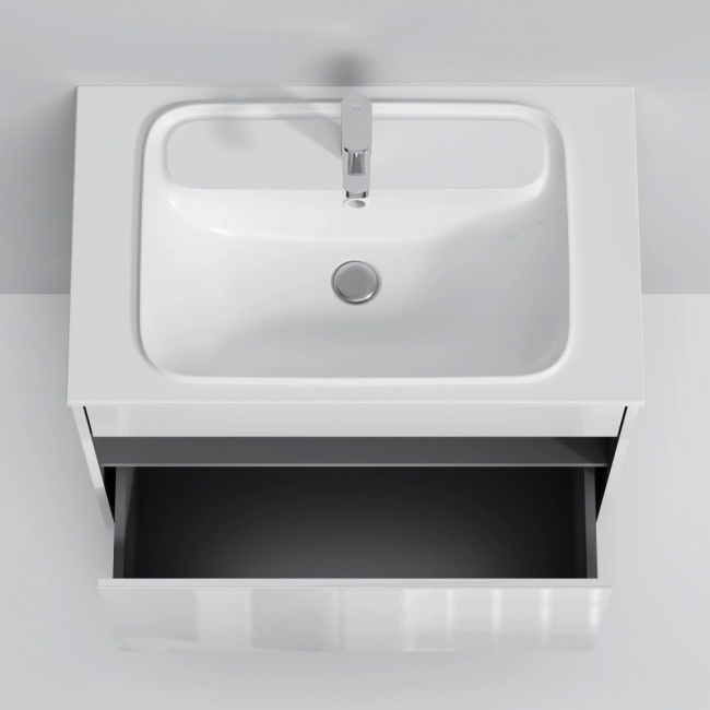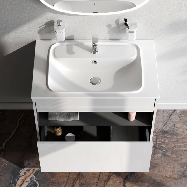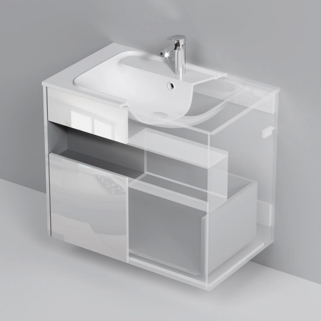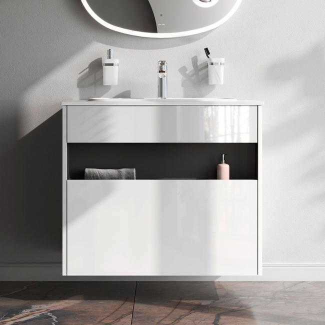 Удобный выдвижной ящик и вместительная открытая ниша позволяют хранить все необходимые средства под рукой. Невероятно мягкое открытие и закрытие благодаря направляющим скрытого монтажа с системой soft close.