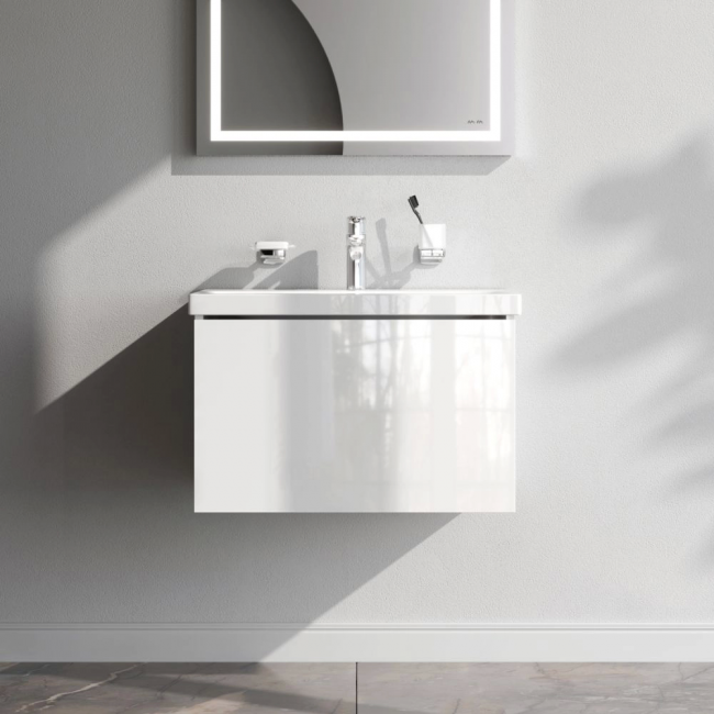 Хотите выделиться при ограниченном бюджете? Трендовый дизайн мебели для ванной комнаты Gem не уступает комплектам по гораздо более высокой цене.