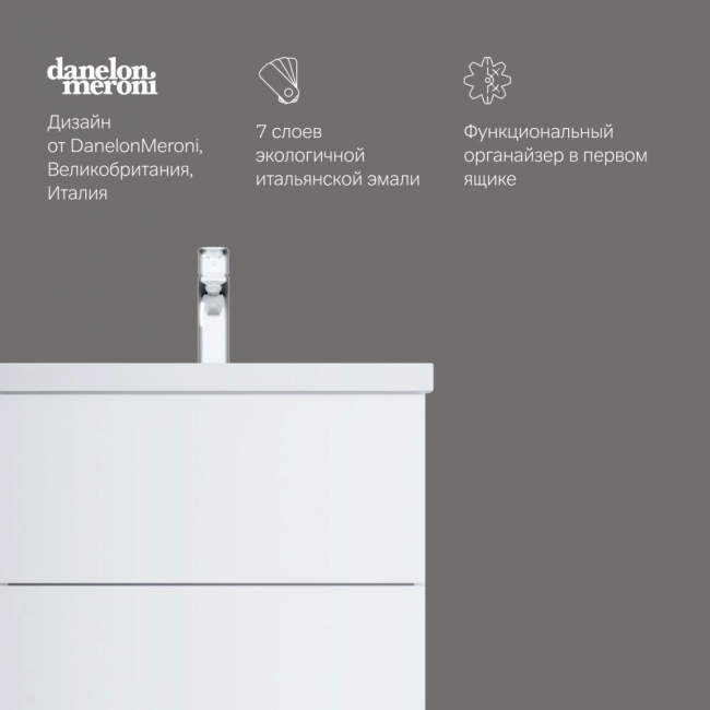 Хотите выделиться при ограниченном бюджете? Трендовый дизайн мебели для ванной комнаты Gem не уступает комплектам по гораздо более высокой цене. Впервые в доступном сегменте: фурнитура push-to-open последнего поколения. Экологически чистые и удивительно долговечные полиакриловые эмали – специальная технология покраски в 7 слоев превосходит технологию нанесения автоэмали у ведущих немецких марок и обеспечивает насыщенный цвет в течение всего срока службы (от 10 лет). Нужно больше места для хранения? Просто добавьте открытую нишу Gem доступную во всех четырех дизайнерских расцветках чтобы создать свою комбинацию.