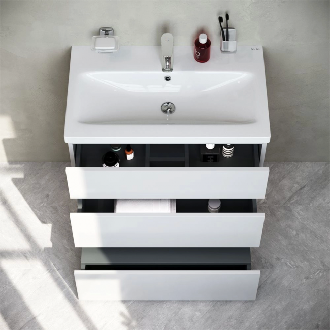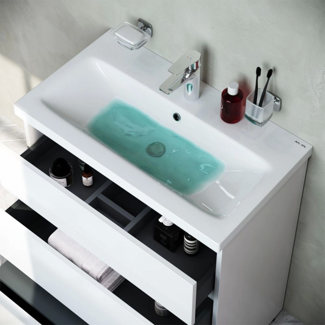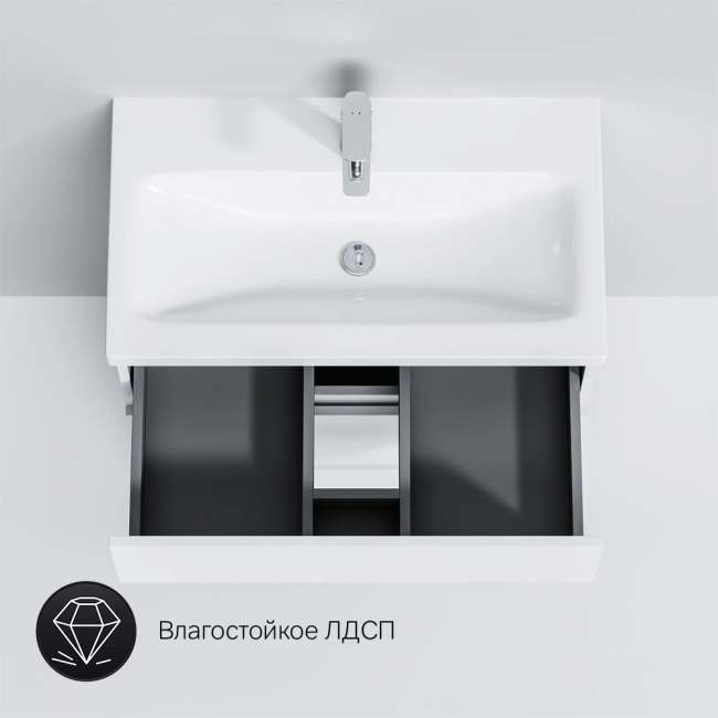 Современный европейский дизайн от DanelonMeroni (Великобритания/Италия). Уникальный нижний ящик базы может быть использован как: выдвижная подставка для детей для удобного мытья рук (выдерживает нагрузку до 60 кг) дополнительная ниша для хранения (экономия пространства ванной комнаты).