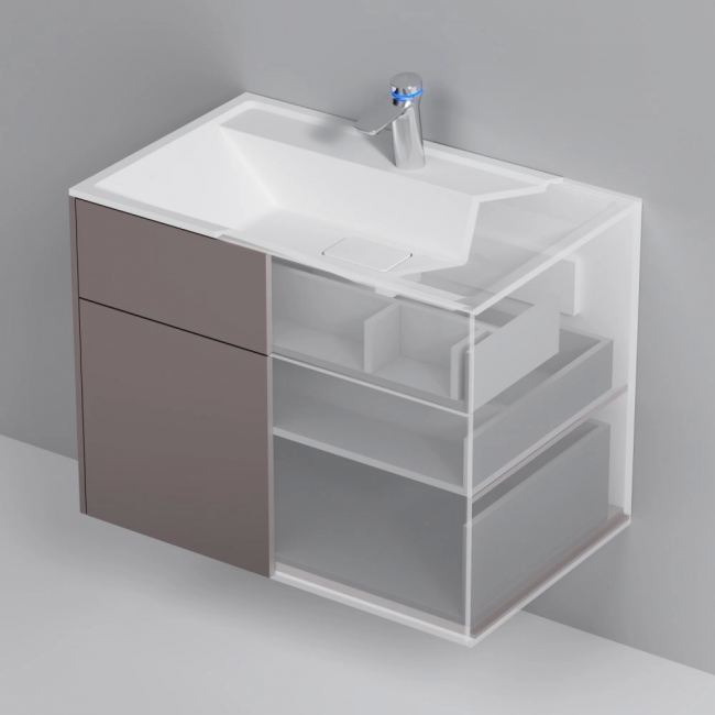 Ультратонкая раковина эргономичной формы с покрытием из мрамора идеально сочетается с мебельной базой