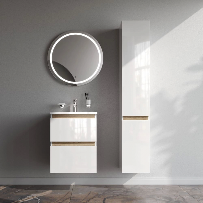 Подвесная тумба бренда AM.PM коллекции X-Joy с белыми глянцевыми фасадами, дополненными отделкой под светлое дерево. Функциональный органайзер в первом ящике позволит хранить необходимые косметические средства под рукой и в полном порядке. Внутреннее покрытие каждого ящика выполнено в современном цвете "антрацит" и имеет противоскользящее покрытие. Материал и покрытие корпуса - влагостойкий ЛДСП. Материал фасада - МДФ. Покрытие фасада - высококачественные итальянские краски и эмали.