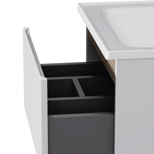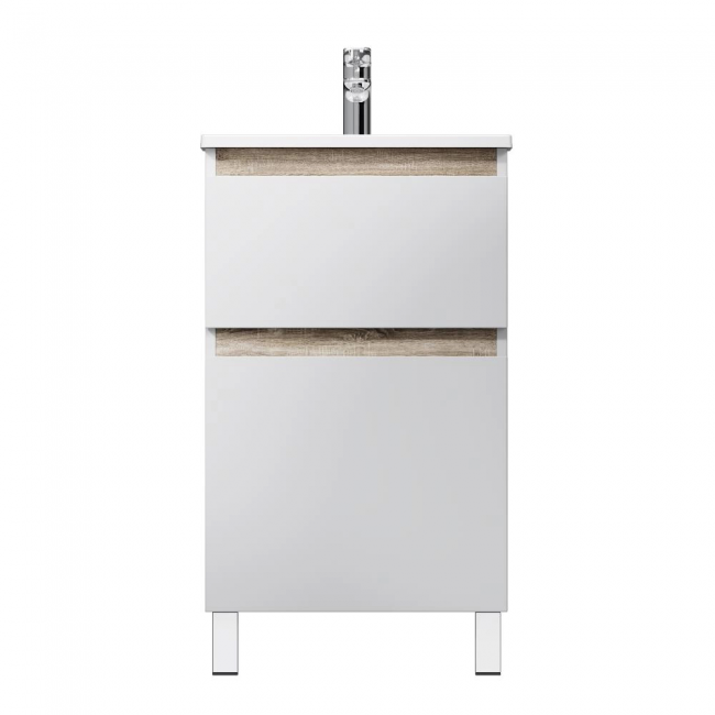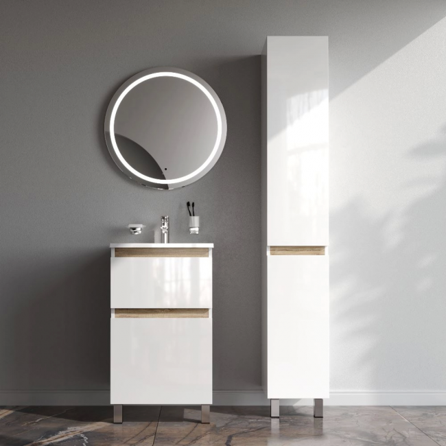 Напольная тумба бренда AM.PM коллекции X-Joy отличается эстетичным сочетанием цветов и фактур от дизайн-агентства Danelon Meroni: белые глянцевые фасады дополнены отделкой под светлое дерево. Функциональный органайзер в первом ящике позволит хранить необходимые косметические средства под рукой и в полном порядке. Внутреннее покрытие каждого ящика выполнено в современном цвете "антрацит" и имеет противоскользящее покрытие. Материал изделия - МДФ, ЛДСП. Размер тумбы (Ш/Г/В): 475x445x830. Цвет тумбы - белый глянец.