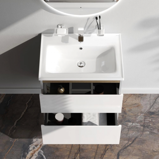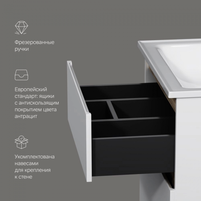 Впервые на рынке – дизайнерская коллекция сантехники которую может позволит себе каждый. Самое эстетичное сочетание цветов и фактур от дизайн-бюро Danelon Meroni (Великобритания & Италия): белые глянцевые фасады дополнены отделкой под светлое дерево. Функциональный органайзер в первом ящике позволит хранить необходимые косметические средства под рукой и в полном порядке. Внутреннее покрытие каждого ящика выполнено в современном цвете Anthracite и имеет противоскользящее покрытие. Встроенная керамическая раковина белоснежного цвета оснащена специальным бортиком для защиты от пролива воды за мебель. Экологически чистые и удивительно долговечные полиакриловые эмали – специальная технология покраски в 7 слоев превосходит технологию нанесения автоэмали у ведущих немецких марок и обеспечивает насыщенный цвет в течение всего срока службы (от 10 лет). База совместима с раковиной: артикул M85AWCC0652WG.