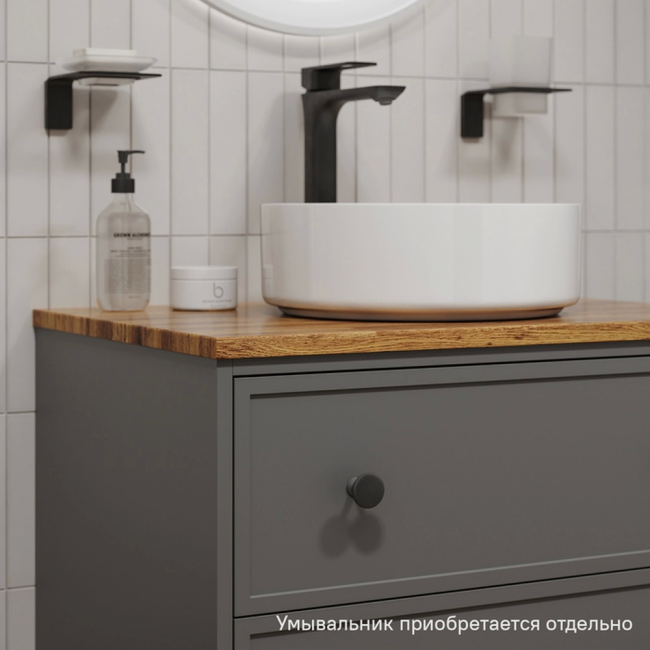 Компактная подвесная тумба Torr трендового темно-серого цвета сочетает в себе узнаваемый стиль и практичность популярного скандинавского дизайна. Ее четкие формы, фасады с декоративной филенкой, круглые ручки смотрятся гармонично и впишутся в любой современный интерьер. Соберите свой комплект со столешницей Torr и любым накладным умывальником (покупаются отдельно). Два просторных выдвижных ящика закрываются плавно и бесшумно благодаря высококачественным скрытым направляющим с доводчиками Hettich. Внутренние ящики в графитовом оттенке выглядят стильно. Внутри ящики графитового цвета – стильно и практично. Покрытие качественной влагостойкой пленкой, разработанной для использования в помещениях с высокой влажностью, сохранит первоначальный вид мебели надолго (при должном уходе). Надежная фурнитура Hettich рассчитана на 30 000 открываний – это более 10 лет исправной работы.Гарантия на мебель IDDIS® – 3 года.