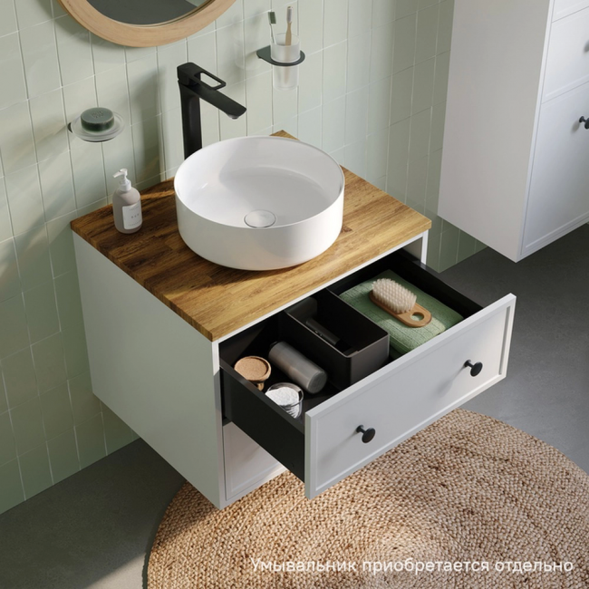 Компактная подвесная тумба Torr классического молочно-белого цвета сочетает в себе узнаваемый стиль и практичность популярного скандинавского дизайна. Ее четкие формы, фасады с декоративной филенкой, круглые ручки смотрятся гармонично и впишутся в любой современный интерьер. Соберите свой комплект со столешницей Torr и любым накладным умывальником (покупаются отдельно). Два просторных выдвижных ящика закрываются плавно и бесшумно благодаря высококачественным скрытым направляющим с доводчиками Hettich. Внутри ящики графитового цвета – стильно и практично. Многослойное покрытие матовой эмалью, предназначенной для использования в помещениях с высокой влажностью, позволит сохранить первоначальный вид мебели надолго (при должном уходе). Надежная фурнитура Hettich рассчитана на 30 000 открываний – это более 10 лет исправной работы.Гарантия на мебель IDDIS® – 3 года.