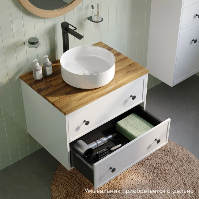Компактная подвесная тумба Torr классического молочно-белого цвета сочетает в себе узнаваемый стиль и практичность популярного скандинавского дизайна. Ее четкие формы, фасады с декоративной филенкой, круглые ручки смотрятся гармонично и впишутся в любой современный интерьер. Соберите свой комплект со столешницей Torr и любым накладным умывальником (покупаются отдельно). Два просторных выдвижных ящика закрываются плавно и бесшумно благодаря высококачественным скрытым направляющим с доводчиками Hettich. Внутри ящики графитового цвета – стильно и практично. Многослойное покрытие матовой эмалью, предназначенной для использования в помещениях с высокой влажностью, позволит сохранить первоначальный вид мебели надолго (при должном уходе). Надежная фурнитура Hettich рассчитана на 30 000 открываний – это более 10 лет исправной работы.Гарантия на мебель IDDIS® – 3 года.