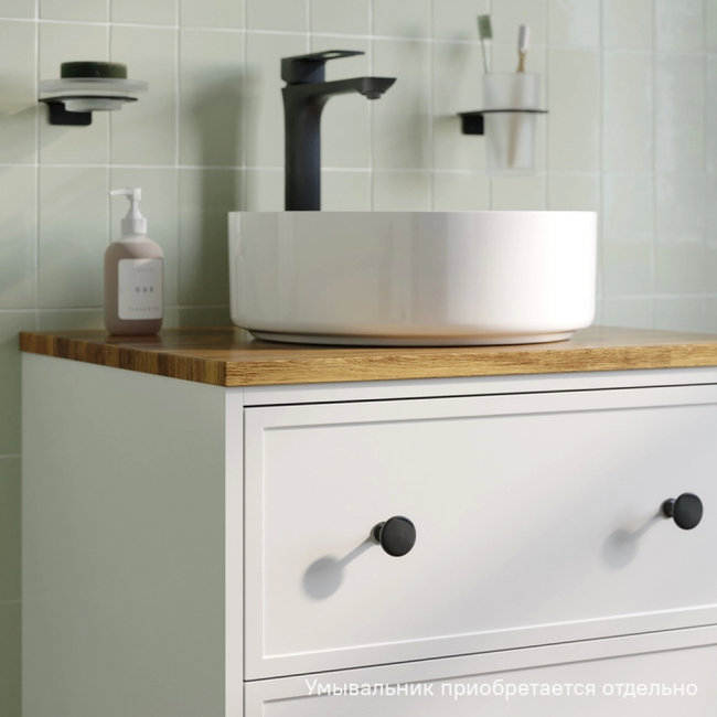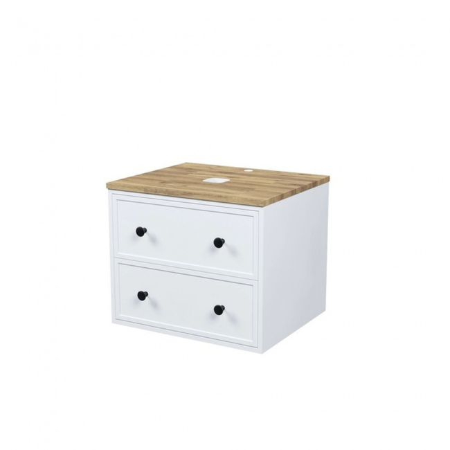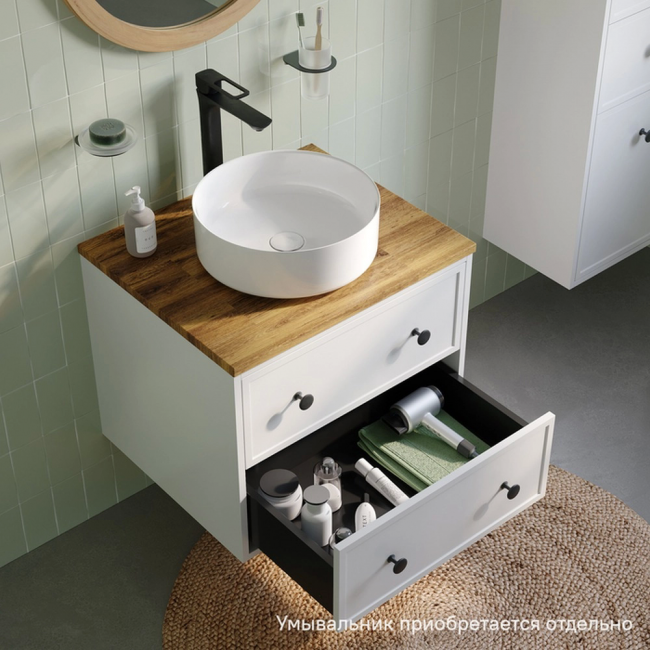 Компактная подвесная тумба Torr классического молочно-белого цвета со столешницей из клееного натурального дуба. Сочетает в себе узнаваемый стиль и практичность популярного скандинавского дизайна. Ее четкие формы, теплый цвет дерева, фасады с декоративной филенкой, круглые ручки смотрятся гармонично и впишутся в любой современный интерьер. Подойдет любой накладной умывальник, покупается отдельно. Два просторных выдвижных ящика закрываются плавно и бесшумно благодаря высококачественным скрытым направляющим с доводчиками Hettich. Внутри ящики графитового цвета – стильно и практично. Многослойное покрытие матовой эмалью, предназначенной для использования в помещениях с высокой влажностью, позволит сохранить первоначальный вид мебели надолго (при должном уходе). Надежная фурнитура Hettich рассчитана на 30 000 открываний – это более 10 лет исправной работы.Гарантия на мебель IDDIS® – 3 года.