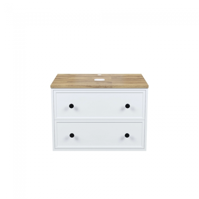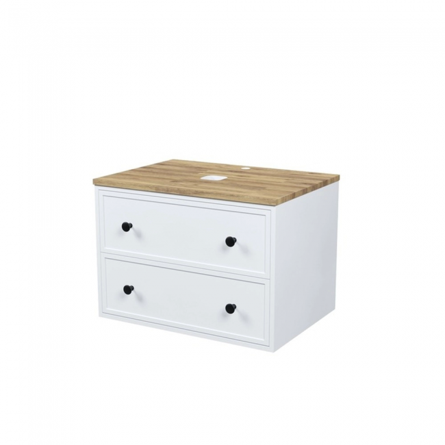 Компактная подвесная тумба Torr классического молочно-белого цвета со столешницей из клееного натурального дуба. Сочетает в себе узнаваемый стиль и практичность популярного скандинавского дизайна. Ее четкие формы, теплый цвет дерева, фасады с декоративной филенкой, круглые ручки смотрятся гармонично и впишутся в любой современный интерьер. Подойдет любой накладной умывальник, покупается отдельно. Два просторных выдвижных ящика закрываются плавно и бесшумно благодаря высококачественным скрытым направляющим с доводчиками Hettich. Внутри ящики графитового цвета – стильно и практично. Многослойное покрытие матовой эмалью, предназначенной для использования в помещениях с высокой влажностью, позволит сохранить первоначальный вид мебели надолго (при должном уходе). Надежная фурнитура Hettich рассчитана на 30 000 открываний – это более 10 лет исправной работы.Гарантия на мебель IDDIS® – 3 года.