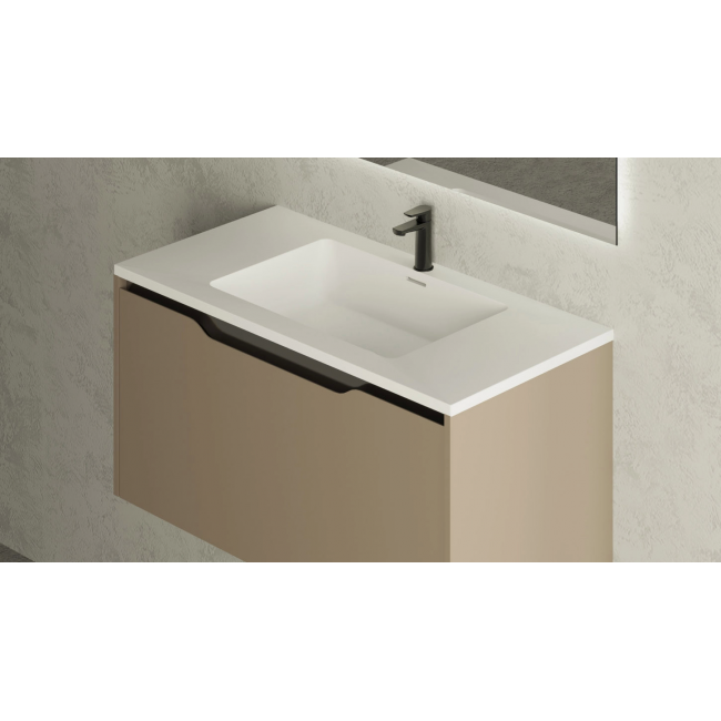 Влагостойкие материалы: ящик тумбы выполнен из влагостойкой ламинированной плиты, фасады выполнены из МДФ и с двух сторон покрыты эмалью для дополнительной защиты от влаги