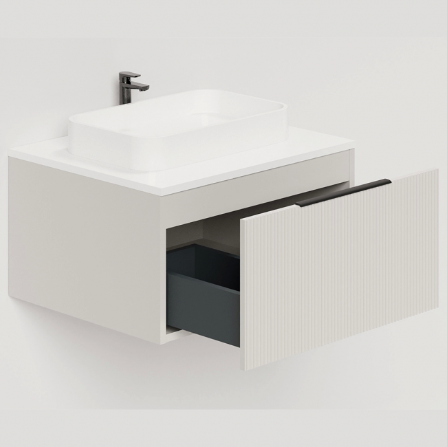 Влагостойкие материалы: ящик тумбы выполнен из влагостойкой ламинированной плиты, фасады выполнены из МДФ и с двух сторон покрыты эмалью для дополнительной защиты от влаги