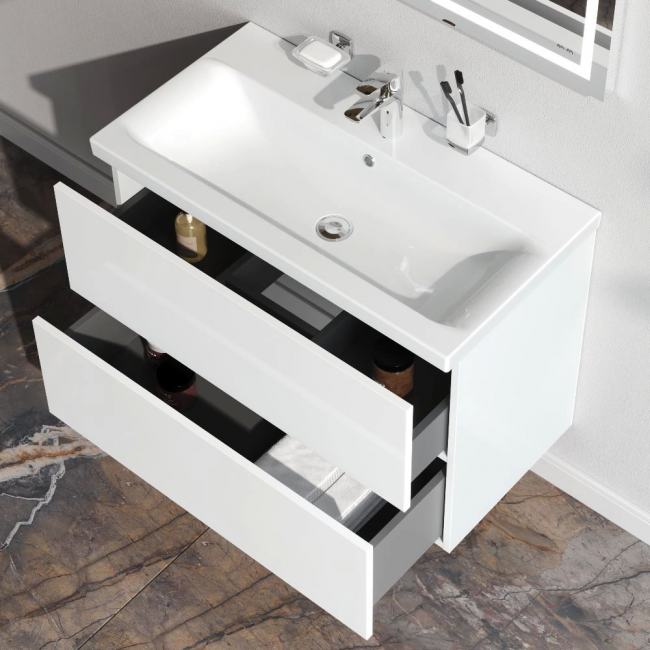 Подвесная тумба помогает сэкономить место в ванной комнате, визуально увеличивая пространство. Установка на удобной высоте. Оптимизация хранения вещей внутри ящиков. Грамотно расположенные скрытые коммуникации внутри тумбы. Сантехнический фарфор - долговечный и прочный материал, обладающий высокой гигиеничностью.