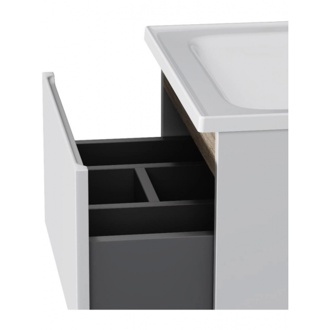Напольная тумба бренда AM.PM коллекции X-Joy отличается эстетичным сочетанием цветов и фактур от дизайн-агентства Danelon Meroni: белые глянцевые фасады дополнены отделкой под светлое дерево. Функциональный органайзер в первом ящике позволит хранить необходимые косметические средства под рукой и в полном порядке. Внутреннее покрытие каждого ящика выполнено в современном цвете "антрацит" и имеет противоскользящее покрытие. Материал изделия - МДФ, ЛДСП. Размер тумбы (Ш/Г/В): 475x445x830. Цвет тумбы - белый глянец.