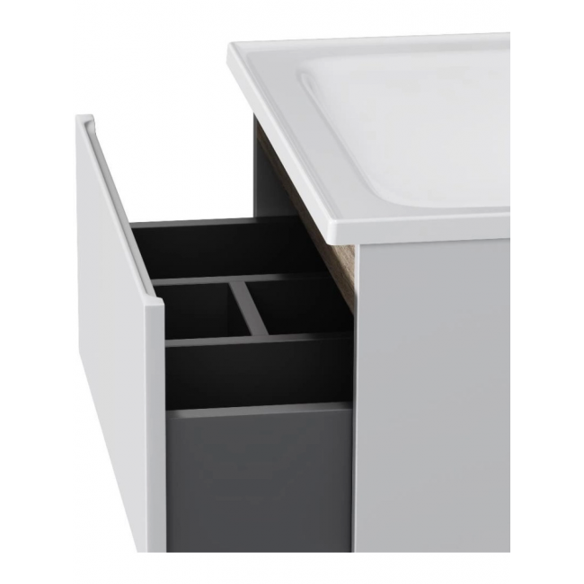 Подвесная тумба бренда AM.PM коллекции X-Joy с белыми глянцевыми фасадами, дополненными отделкой под светлое дерево. Функциональный органайзер в первом ящике позволит хранить необходимые косметические средства под рукой и в полном порядке. Внутреннее покрытие каждого ящика выполнено в современном цвете "антрацит" и имеет противоскользящее покрытие. Материал и покрытие корпуса - влагостойкий ЛДСП. Материал фасада - МДФ. Покрытие фасада - высококачественные итальянские краски и эмали.