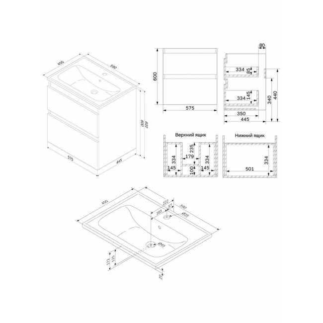 Размер тумбы (Ш/Г/В): 575x445x600. Цвет тумбы - белый глянец.