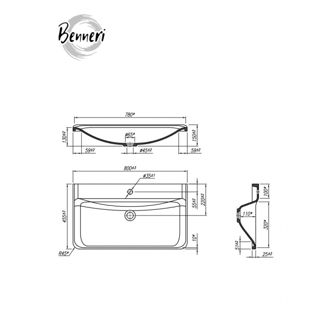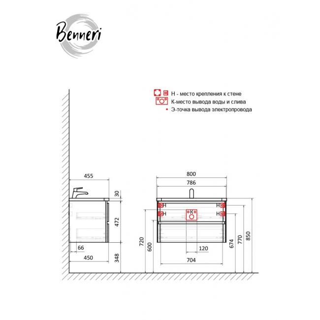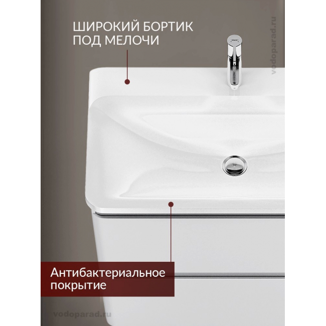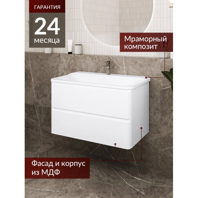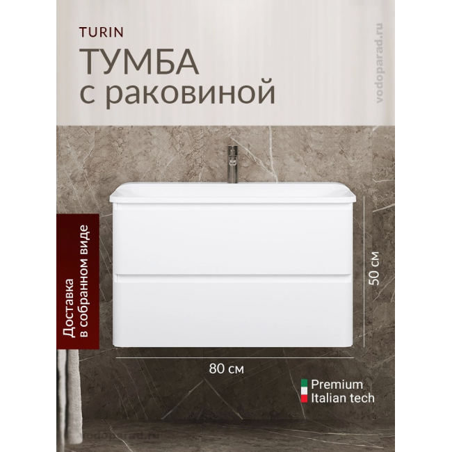 Тумба с раковиной Benneri Turin Artic 2 80 B6.1.2080.WH+B7.7.2080.00 белая купить с доставкой. 100% Оригинал. Гарантия!