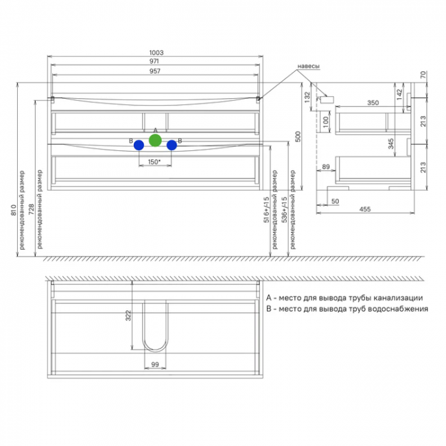 - Подвесная конструкция тумбы делает ее воздушной и упрощает процесс уборки в ванной.