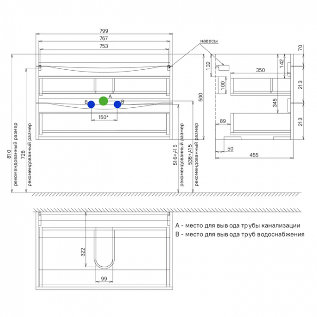- Подвесная конструкция тумбы делает ее воздушной и упрощает процесс уборки в ванной.