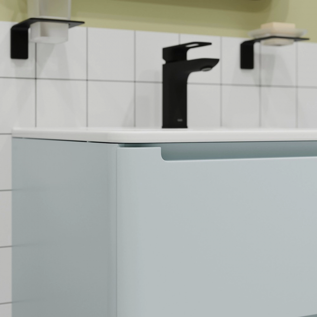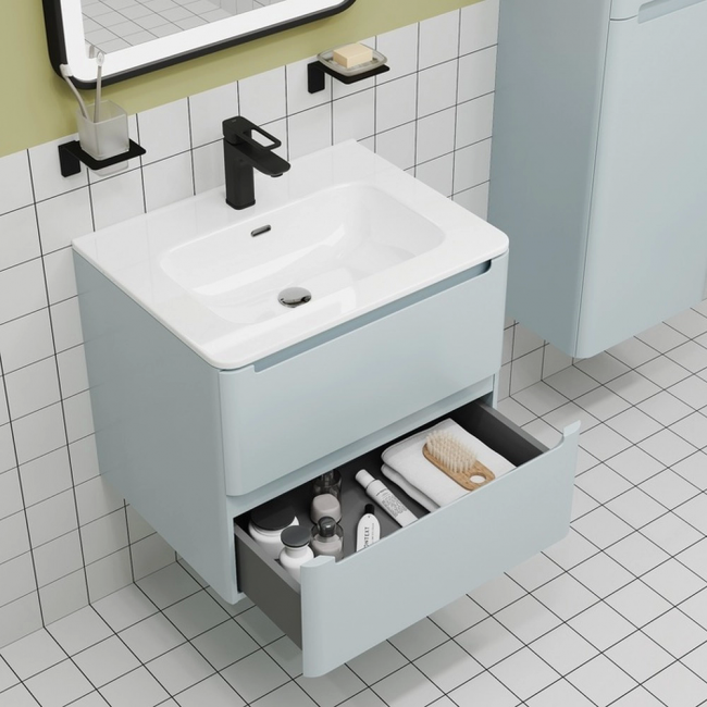 Компактная подвесная тумба с плоским умывальником Edifice в нежно-голубом оттенке – воплощение современного минимализма. Мягкие линии корпуса в сочетании с удобными интегрированными ручками выглядят свежо и актуально. Смотрится аккуратно, легко и не усложняет процесс уборки в ванной благодаря подвесной конструкции.В комплекте умывальник (арт. 0106000i28) из качественного фарфора. Он отличается высокой прочностью и прост в уходе: не задерживает загрязнения и неприятные запахи, надолго сохраняя первозданную белизну.Два выдвижных ящика закрываются плавно и бесшумно благодаря высококачественным скрытым направляющим с доводчиками немецкого производства.Надежные крепления рассчитаны на большой вес и позволяют равномерно распределять нагрузку.Фурнитура рассчитана на 30 000 открываний, что составляет более 10 лет исправной работы.Гарантия на мебель IDDIS® – 3 года.