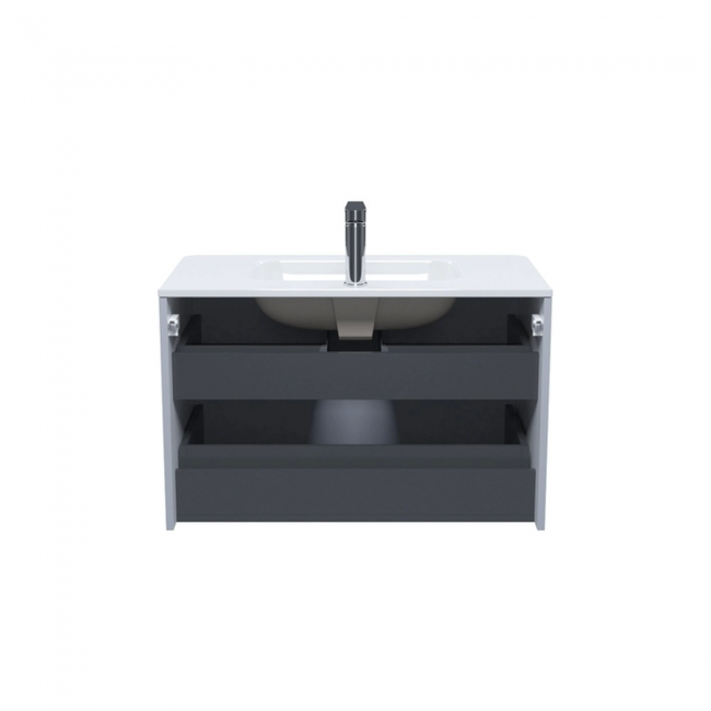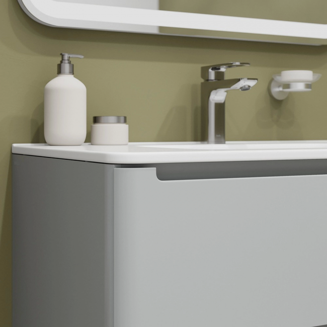 Подвесная тумба с плоским умывальником Edifice в стильном светло-сером цвете – воплощение современного минимализма. Мягкие линии корпуса в сочетании с удобными интегрированными ручками выглядят свежо и актуально. Смотрится аккуратно, легко и не усложняет процесс уборки в ванной благодаря подвесной конструкции.В комплекте умывальник (арт. 0108000i28) из качественного фарфора. Он отличается высокой прочностью и прост в уходе: не задерживает загрязнения и неприятные запахи, надолго сохраняя первозданную белизну.Два выдвижных ящика закрываются плавно и бесшумно благодаря высококачественным скрытым направляющим с доводчиками немецкого производства.Надежные крепления рассчитаны на большой вес и позволяют равномерно распределять нагрузку.Фурнитура рассчитана на 30 000 открываний, что составляет более 10 лет исправной работы.Гарантия на мебель IDDIS® – 3 года.