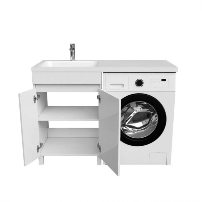 Тумба Optima Home – это удобное решение, чтобы организовать одновременно и зону умывания, и расположить стиральную машину. Модель подходит для установки стиральных машин с фронтальной загрузкой, справа от тумбы. В коллекции Optima Home также представлен вариант c расположением машинки слева от тумбы (арт. OPH12RDi95K). За ассиметричными распашными дверками расположена вместительная зона хранения для бытовой химии и принадлежностей для стирки. Высокие ножки позволяют скрыть коммуникации под тумбой и защитить ее от повреждения при затоплении. Тумбу дополняет умывальник (арт. 480120Li28) с длинным крылом и большой, глубокой чашей.• В комплекте: сифон с отводом под стиральную машину, настенный кронштейн и декоративная крышка сливного отверстия умывальника.• Фурнитура мебели IDDIS® рассчитана на 30 тысяч открываний, что составляет более 10 лет исправной работы. • Простой монтаж: ножки и настенный крепеж тумбы регулируются по высоте.• Умывальник IDDIS® изготовлен из литьевого искусственного камня. Специальное покрытие из гелькоута обладает стойкостью к загрязнению благодаря отсутствию микропор. • Гарантия на тумбу IDDIS® – 3 года. Гарантия на умывальник IDDIS® – 5 лет. (с) Авторский текст, июнь 2022 г.