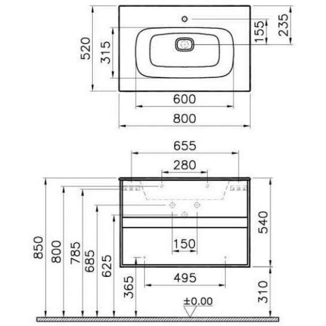 Тумба с раковиной VitrA Metropole 80 58181 ливовое дерево купить с доставкой. 100% Оригинал. Гарантия!