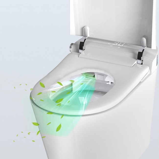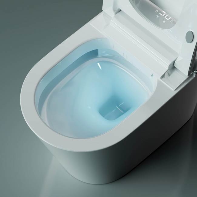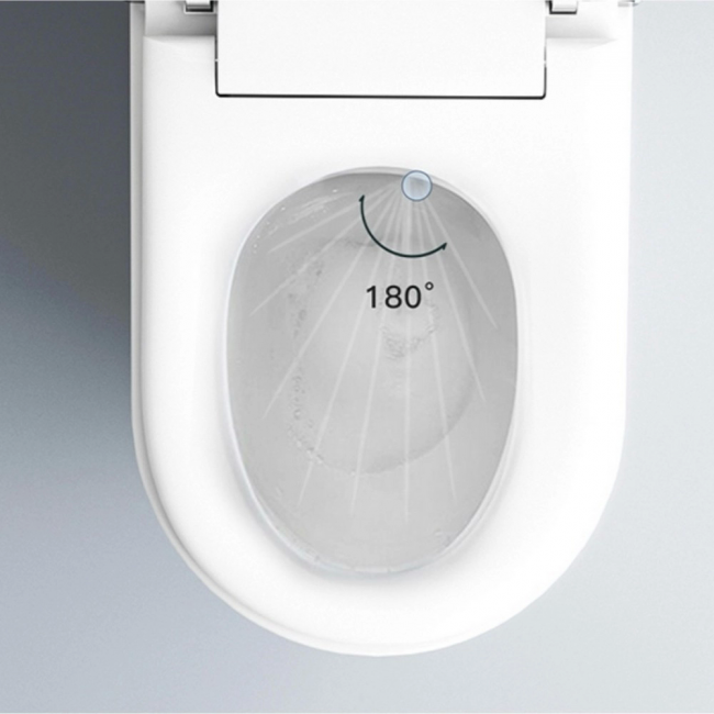 Электронный унитаз оснащен: несколькими функциями биде, самоочишающейся, двигающейся форсункой с настраиваемым напором воды, регулировкой положения, автоматическим открытием крышки, подогревом сиденья, быстрым нагреванием воды, сушкой, регулировкой температуры воды и сушки, регулировкой давления воды, автоматическим смывом, который также работает с отключенным питанием.