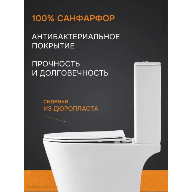 | Комплектация | унитаз-компакт, тонкое сидение, крышка с микролифтом, крепление, бачок, крышка бачка, арматура смыва |