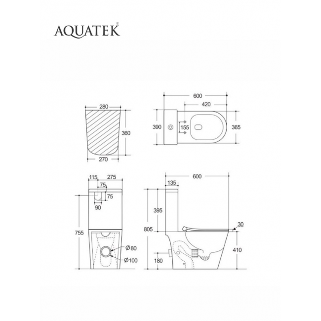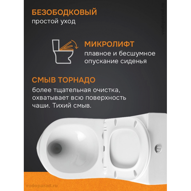 Унитаз-компакт напольный безободковый с бачком AQUATEK ЛИБЕРТИ AQ2999T-00, 600*390*805мм, смыв ТОРНАДО, горизонтальный выпуск, тонкое сиденье с механизмом плавного закрывания, крепеж купить с доставкой. 100% Оригинал. Гарантия!