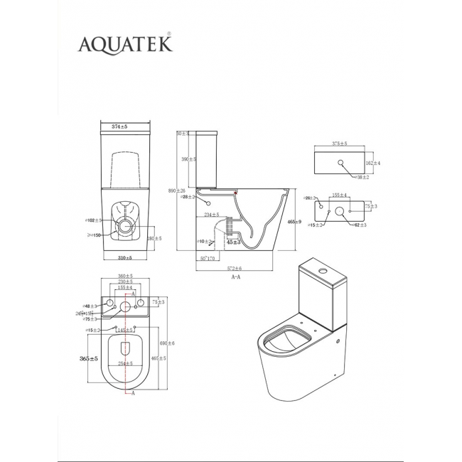 Унитаз-компакт напольный безободковый с бачком AQUATEK ОБЕРОН AQ1273H-00 890*375*690 мм, горизонтальный выпуск, тонкое сиденье с механизмом плавного закрывания, крепеж купить с доставкой. 100% Оригинал. Гарантия!