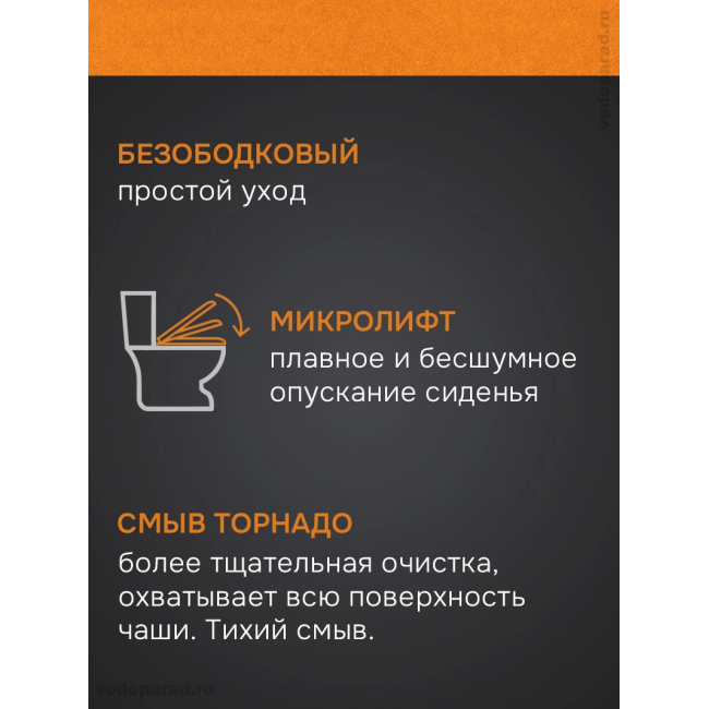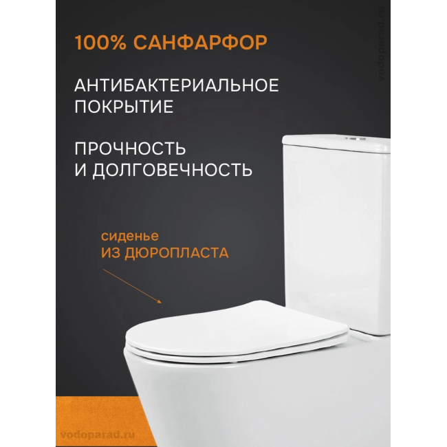 Унитаз-компакт напольный безободковый с бачком AQUATEK ВЕГА AQ2904T-00 630*385*815 мм, горизонтальный выпуск, смыв ТОРНАДО, тонкое сиденье с механизмом плавного закрывания, крепеж купить с доставкой. 100% Оригинал. Гарантия!