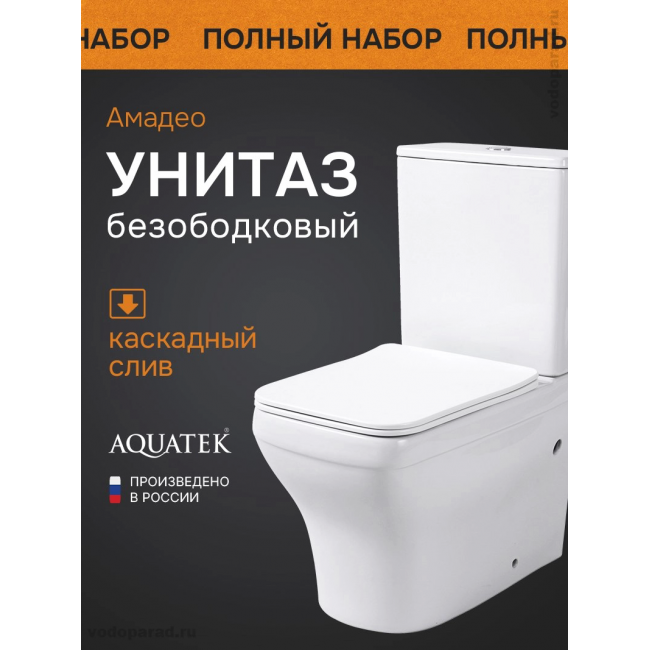 Унитаз-компакт напольный с бачком и сиденьем микролифт Aquatek Амадео AQ2914-00 безободковый купить с доставкой. 100% Оригинал. Гарантия!