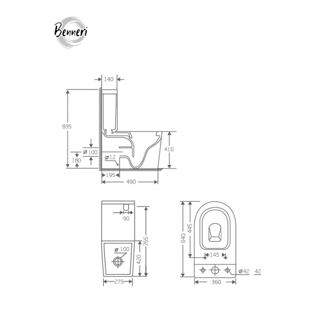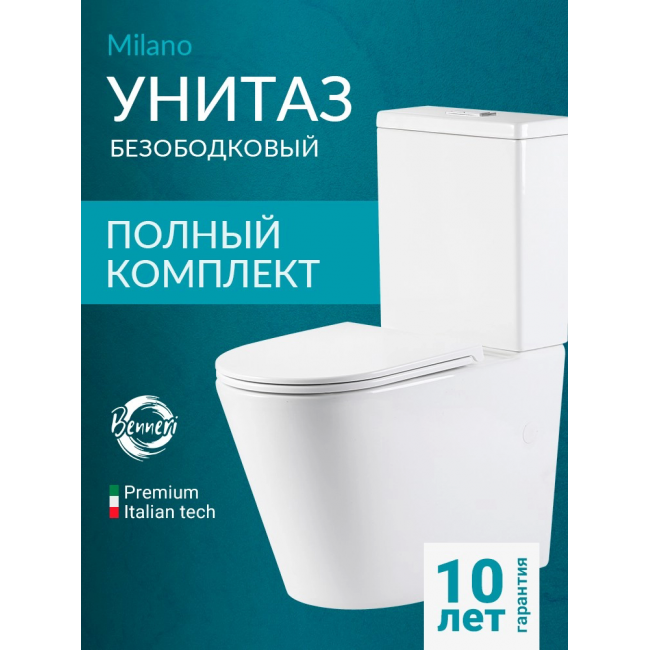 Унитаз-компакт напольный с бачком и сиденьем микролифт Benneri Milano B5.6.1178.00 безободковый купить с доставкой. 100% Оригинал. Гарантия!