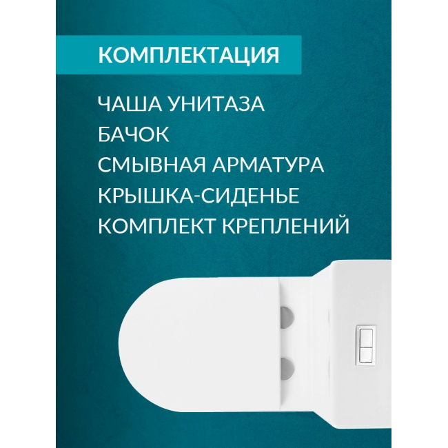 Крышка-сиденье из антибактериального и долговечногодюропласта поставляется в комплекте вместе с унитазом. Ультратонкое сиденье издюропласта не царапается, остаётся белоснежным на протяжении всего срока службыблагодаря повышенной прочности и антибактериальным свойствам материала.Микролифт и система Soft Close плавно и бесшумно опускают крышку сиденья унитаза,обеспечивая комфорт при использовании. Сиденье легко снимается для уборки однимнажатием кнопки и также легко устанавливается обратно.