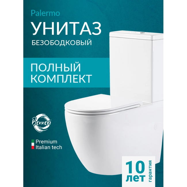 Унитаз-компакт напольный с бачком и сиденьем микролифт Benneri Palermo B5.6.1176.00 безободковый купить с доставкой. 100% Оригинал. Гарантия!