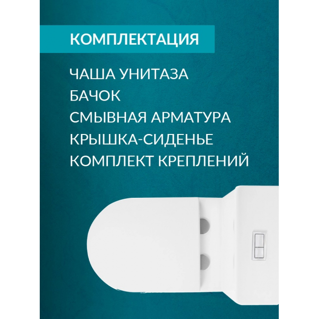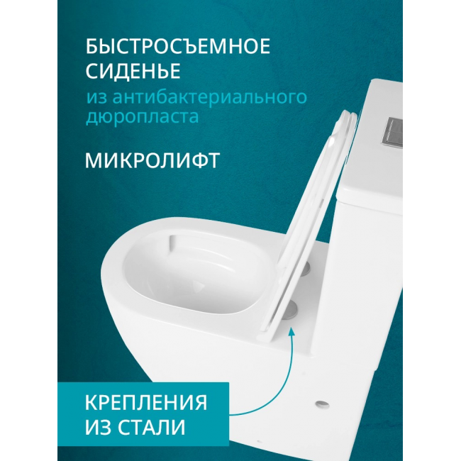 Крышка-сиденье из антибактериального и долговечного дюропласта поставляется в комплекте вместе с унитазом, оснащена механизмом плавного опускания. Крепления крышки выполнены из стали, снятие крышки осуществляется с помощью нажатия одной кнопки.