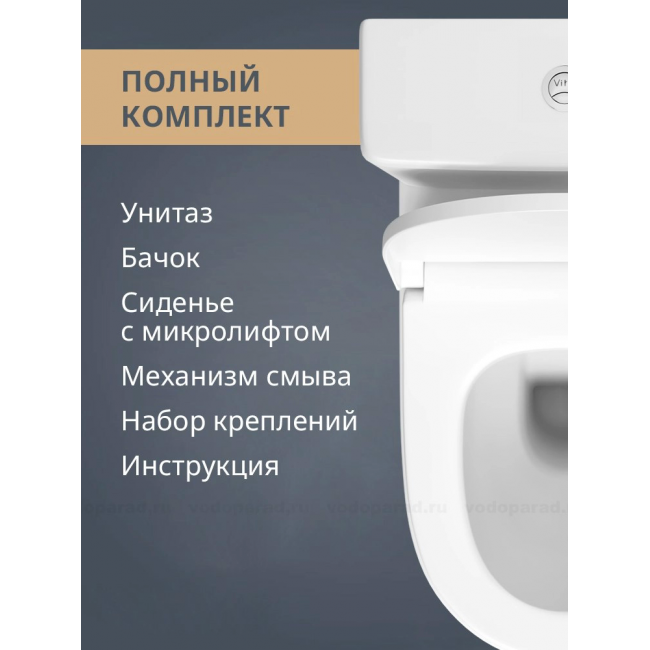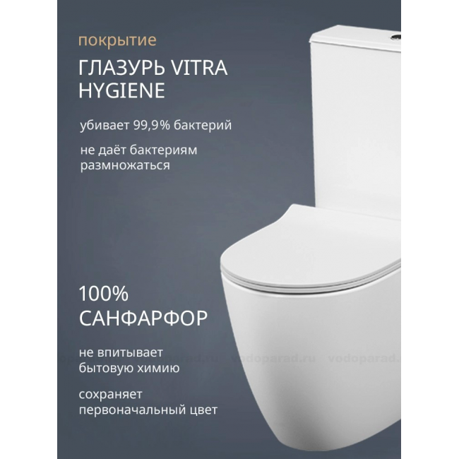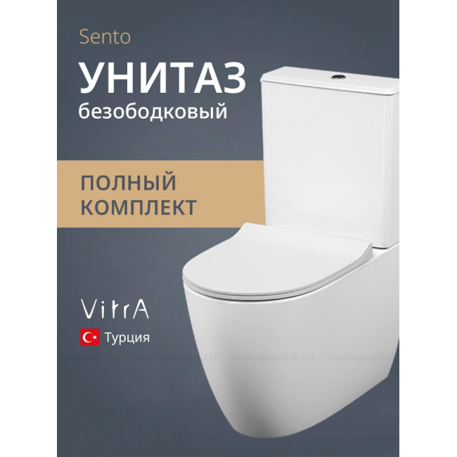 Унитаз-компакт напольный с бачком и сиденьем микролифт VitrA Sento 9830B003-7203 безободковый купить с доставкой. 100% Оригинал. Гарантия!